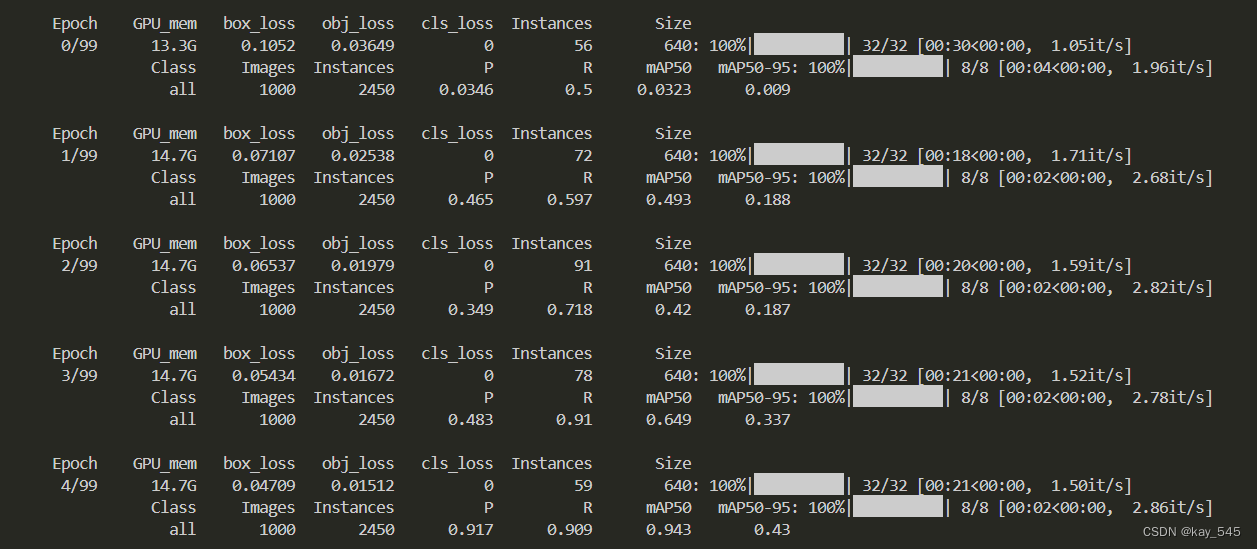 这个是训练的前5个epoch,当然YOLOv5_6.1的默认epoch是300,我为了节约时间将epoch设置为了100,从这里可以看出,模型的map已经有很大的提升了。