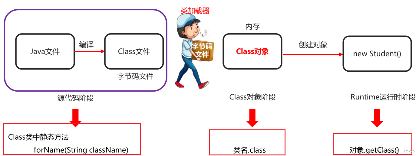 类的字节码对象.getClassLoader(); 获取该类的, 类加载器对象.