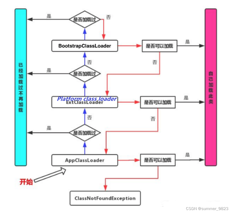 平台类加载器,负责加载JDK中一些特殊的模块,负责加载lib\modules内部的类;(JDK9之前是Extension Class Loader)扩展类加载器,负责加载jre\lib\ext目录下的类。