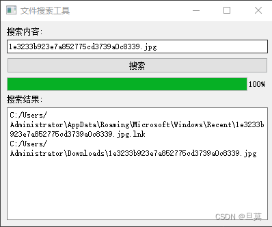 整体来说,这段代码实现了一个简单的文件搜索工具,用户可以输入要搜索的内容,然后点击搜索按钮,程序会在指定目录中搜索包含该内容的文件,并实时显示搜索进度和搜索结果。
