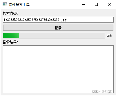 额。。。。居然卡住了,原因是因为遍历文件阻塞的当前主线程,导致界面显示出现了问题,我们做一下优化,将搜索过程放进线程中去实现,以确保搜索过程不会阻塞用户界面的响应。