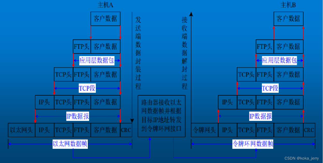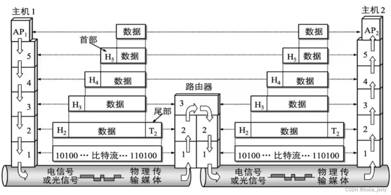 通常把功能相近的协议组织在一起放在一层,协议栈。所以每层其实有多个协议