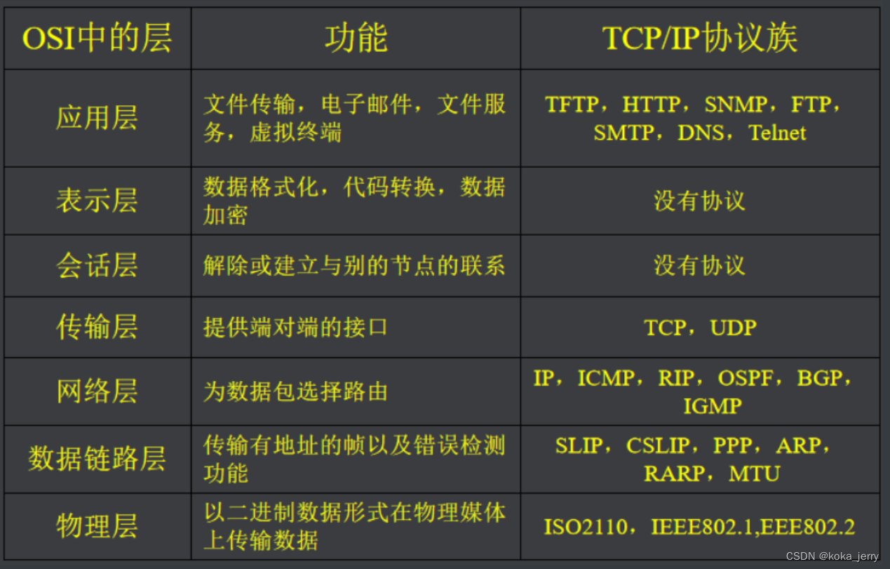 TCP/ip四层体系结构和OSI七层互联模型的对应关系