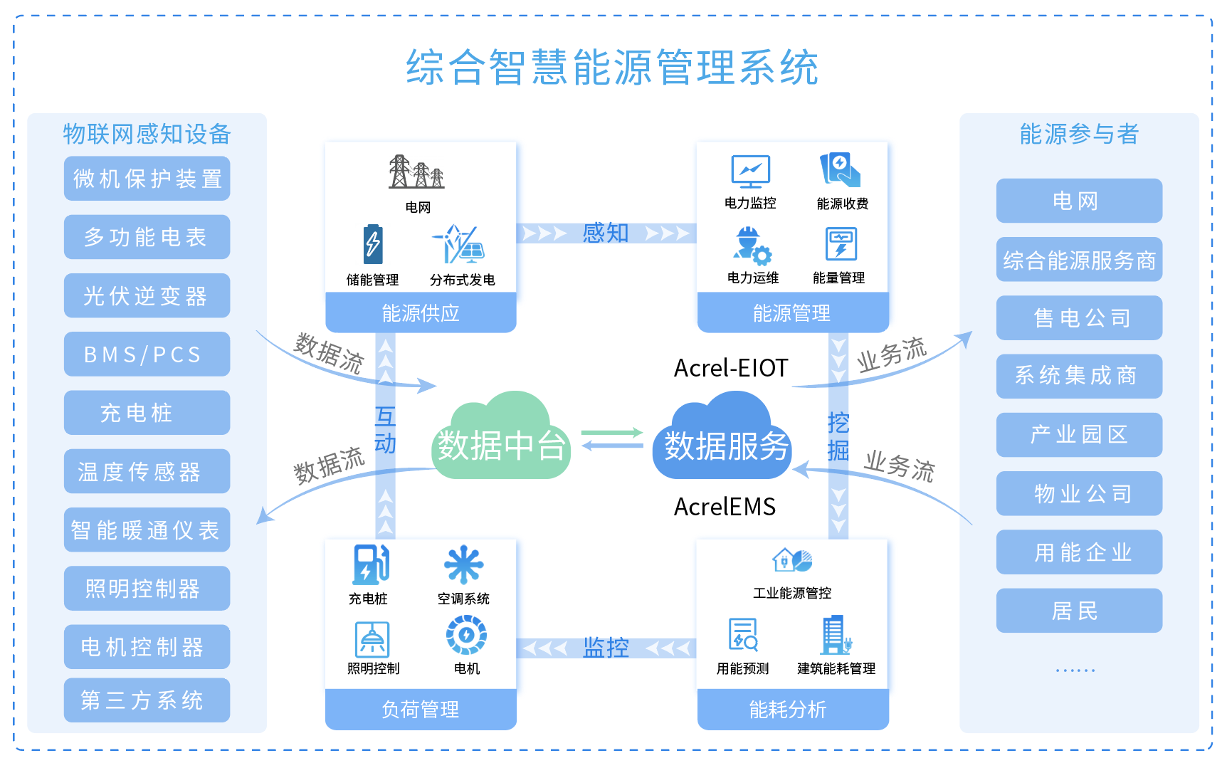 AcrelEMS企业微电网能效管理系统提供基于行业特点细分的能效管理解决方案,支持有线/无线方案接入各类智能设备,并提供多种第三方系统接口协议,融合企业微电网电力监控、能耗统计、电能质量分析及治理、智能照明控制、主要用能设备监控、充电桩运营管理、分布式光伏监控、储能管理等功能,通过一个平台即可全局、整体的对企业电网进行进行集中监控、统一调度、统一运维,满足企业用电可靠、安全、节约、高效、有序用电要求。当用户要管理多个充电站的充电桩时可把充电桩自助接入平台,实现对充电桩状态的监测和扫码、刷卡充电收费管理。