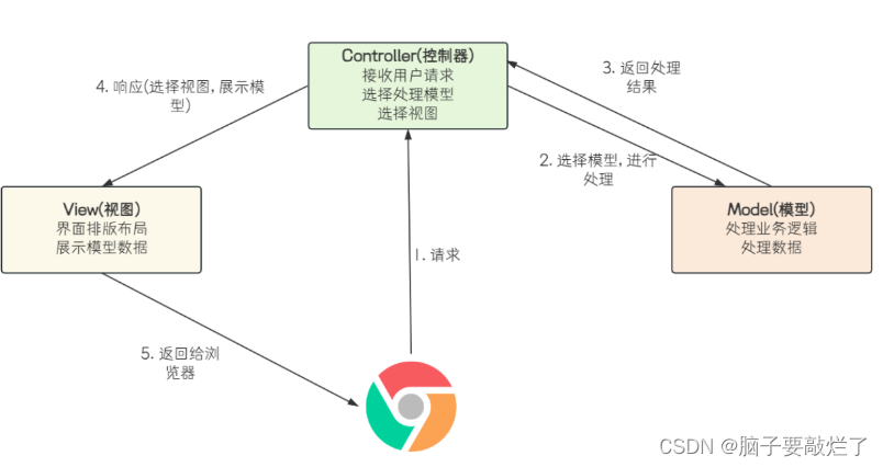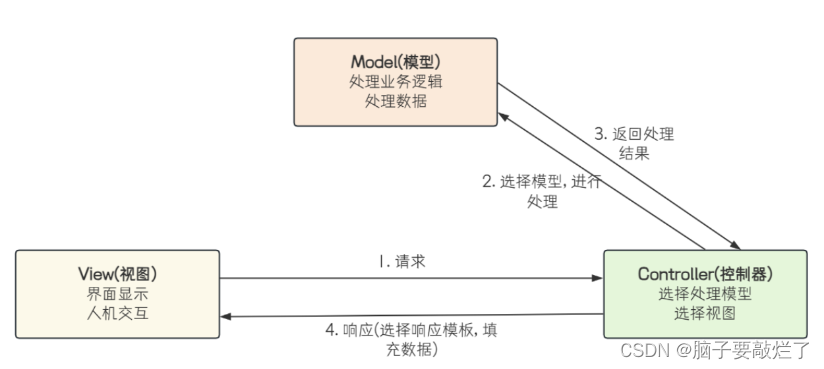 当前MVC的概念发生一些变化,后端人员不涉及前端页面的开发,所以就没有试图层,而view现在返回的是视图所需要的数据
