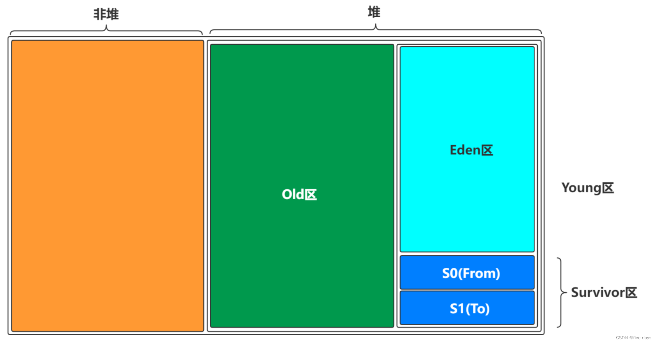 a.假设我们的堆只有一个区,如图所示:我们在java的运行过程中,绝大部分对象都是随着线程的启动而创建,线程结束就销毁了,也就是说大部分的对象的生命周期都是比较短的,即很快就会被垃圾回收回收掉。如果堆只有一个区,那么一方面该堆中每次垃圾回收的成本就很大,并且频次还会很高,另外,当绝大部分垃圾被回收后,就会造成内存碎片,使得大对象没有连续的内存空间进行存放,就会OOM了
