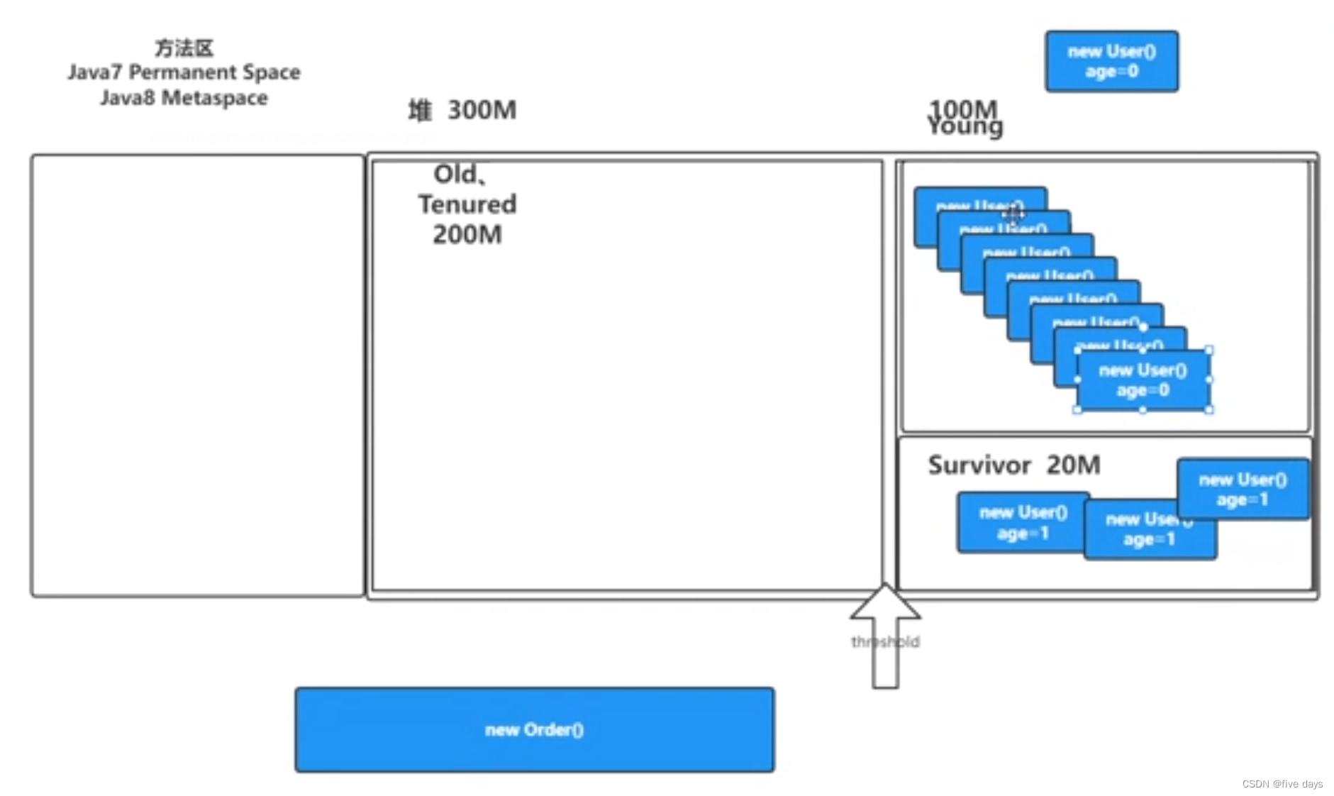 总结: S0和S1可以发现在任何时候,一定会有一个被保留的空间;age到一定的年龄会存入到old区中;下面有几个经典的问题:1.age到一定的年龄会怎么样? 分配到old区;2.如果S0或者S1空间不够了怎么办?会跟old区借一部分空间用于存储,空间担保机制;3.old区空间也不够了,怎么办?那就触发old区的垃圾回收,full GC;4.old区的垃圾回收也没有足够的空间使用了,怎么办? OOM 5.有一个超大的对象, 如果Eden区分配不下了怎么办?直接分配到老年代。