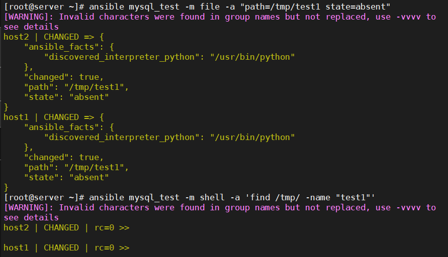 rescue和always块)进行操作。 - 清理: 一旦任务执行完成,无论成功还是失败,Ansible 会清理目标主机上的临时文件,包括删除之前上传的Python脚本。