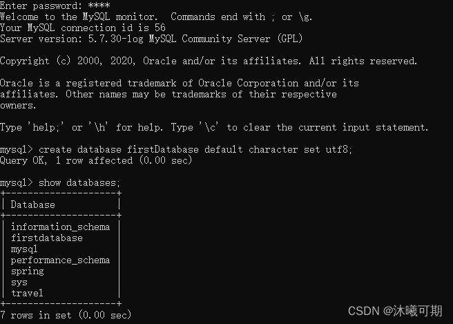 实操:创建一个名为firstDatabase的数据库,并为其指定默认编码为utf-8,并查看数据库是否创建成功。
