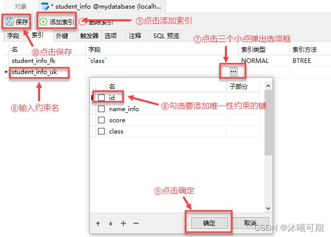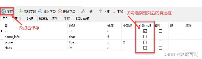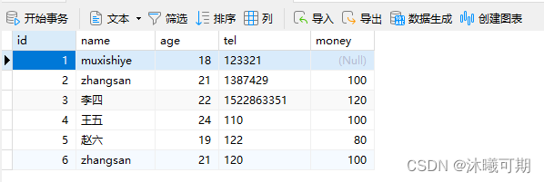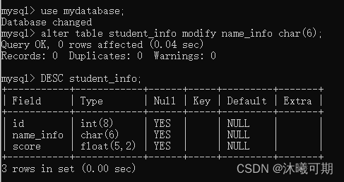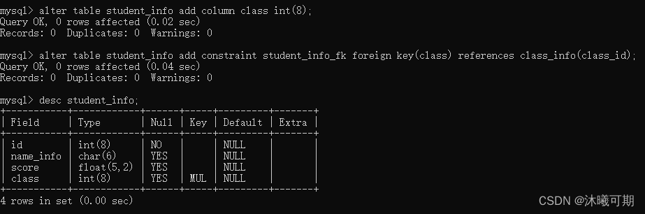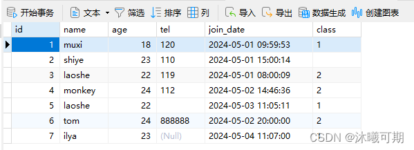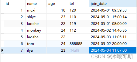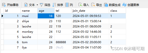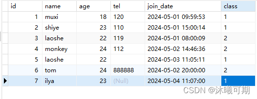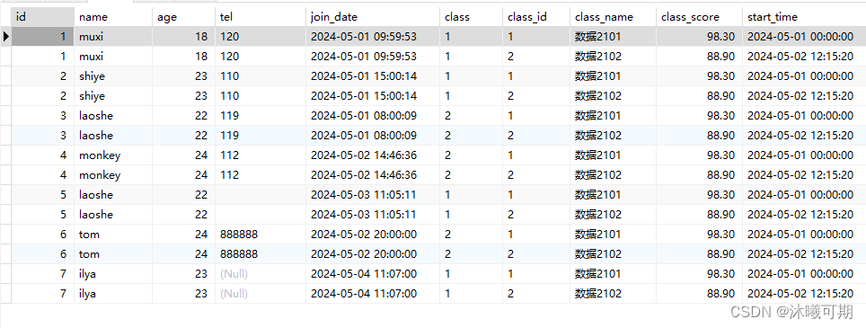 实操前说明:下面是student_info表的字段和数据: