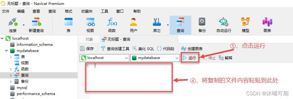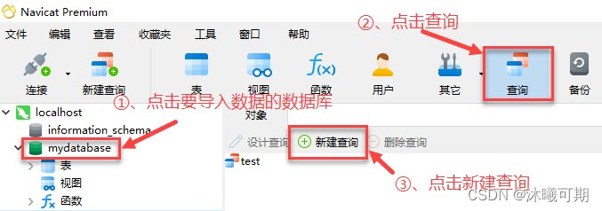 方式2:首先将要导入的数据用任意文本工具打开复制一下(Ctrl+C),然后打开navicat新建查询: