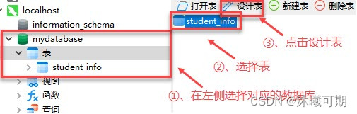 实操:删除mydatabase数据库下名为student的表。