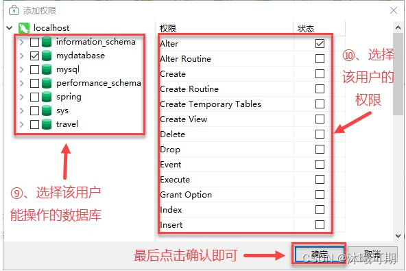 接下来为用户添加权限,不要退出当前页面: