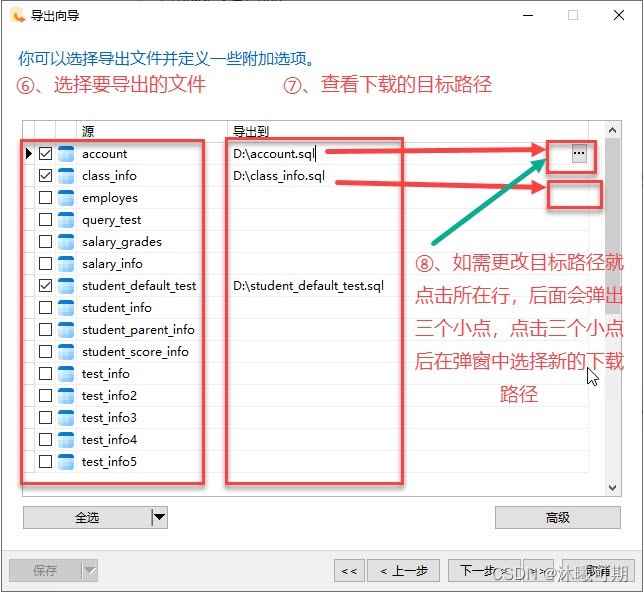完成后点击下一步,然后选择需要导出的字段(默认是全部勾选的,如果需要去掉部分字段要将下面的全部字段前的勾去掉即可选择字段),选择完成后点击下一步: