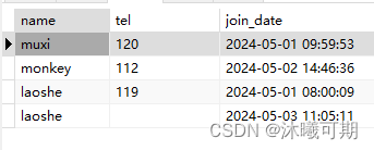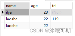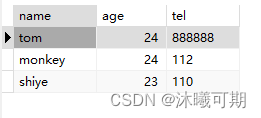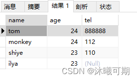 实操1:查询student_info表的name,age,tel字段信息,并对age做降序排序显示,最后使用LIMIT做分页,每页展示3行数据。