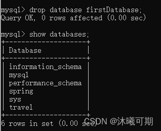 -- 删除名为firstDatabse的数据库