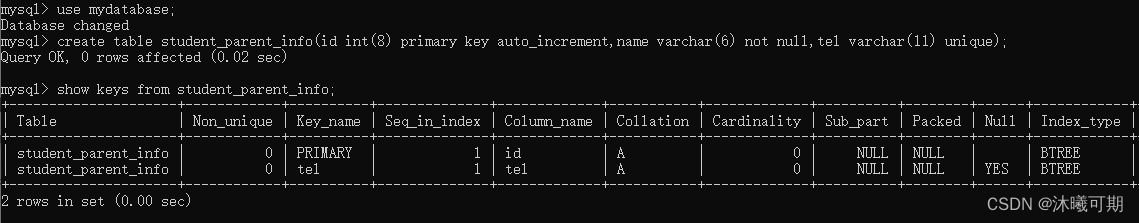 例如,int(3) ,存储的实际值为2时 (并且列指定了 zerofill) ,查询结果就是 002 ,左边用 0 来 填充。