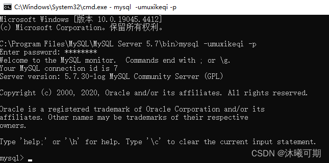 打开cmd窗口后输入如下命令用于登录muxikeqi用户: