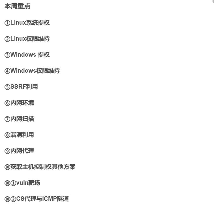 4.4网安学习第四阶段第四周回顾(个人学习记录使用) 2024-05-07 学习 43人 已看 系统提权是成功入侵系统之后,当前用户不是系统管理员,为了获得更高的权限,提升用户的级别 ,属于后渗透模块内容,即是POST后渗透模块。提权手段三种:操作系统的配置提权(管理员的配置错误):suid(wrx wrs) ,sudo,crontab等内核漏洞提权:比如永恒之蓝(windows),脏牛漏洞(linux),溢出类的提权,加固方案只有打补丁。优先使用第三方软件的提权:redis,mysql等。