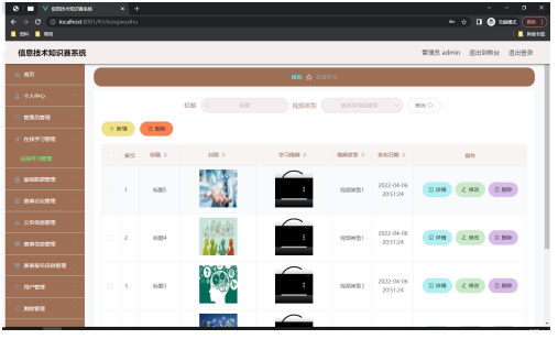 基于springboot实现信息技术知识赛系统项目【项目源码+论文说明】计算机毕业设计 2024-05-18 spring, java, 后端 21人 已看 尽管信息技术知识赛系统具备较完善的功能,但是也需要管理人员利用闲暇时间提升自身素质以及个人能力,在操作信息技术知识赛系统时可以最大化运用信息技术知识赛系统提供的功能,让系统在满足高效率处理数据的同时,也能始终稳定运行,还可以确保数据的可靠性与数据处理的质量。第二点:设计有效的导航,这个包括每个页面上都有导航条的显示,有时也可以在页面的底部设计导航条,当用户进入具体页面时,要设计相应的位置提示,在页面中比较特殊的位置,需要设计返回链接,可以返回上个页面,也可以返回首页等。还进行了对用户名称的模糊查询的条件。