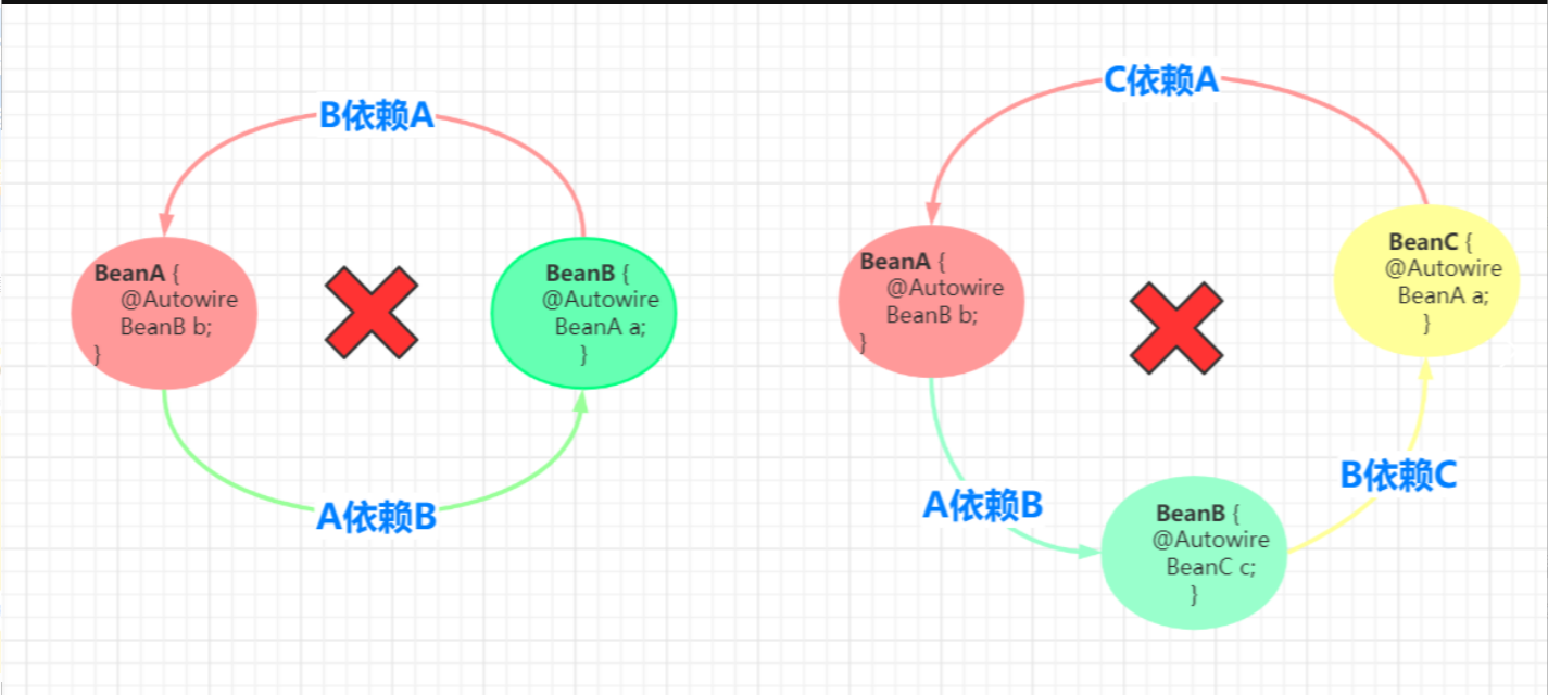 Spring循环依赖的解决机制 2024-05-18 spring, spring boot, java, mybatis, 数据库 39人 已看 我们这个时候得来理解一下earlySingletonObjects的作用,此时,我们只得到了A原始对象的代理对象,这个对象还不完整,因为A原始对象还没有进行属性填充,所以此时不能直接把A的代理对象放入singletonObjects中,所以只能把代理对象放入earlySingletonObjects,假设现在有其他对象依赖了A,那么则可以从earlySingletonObjects中得到A原始对象的代理对象了,并且是A的同一个代理对象。那无法等到解决完循环依赖再创建动态代理, 因为这个时候已经注入属性。