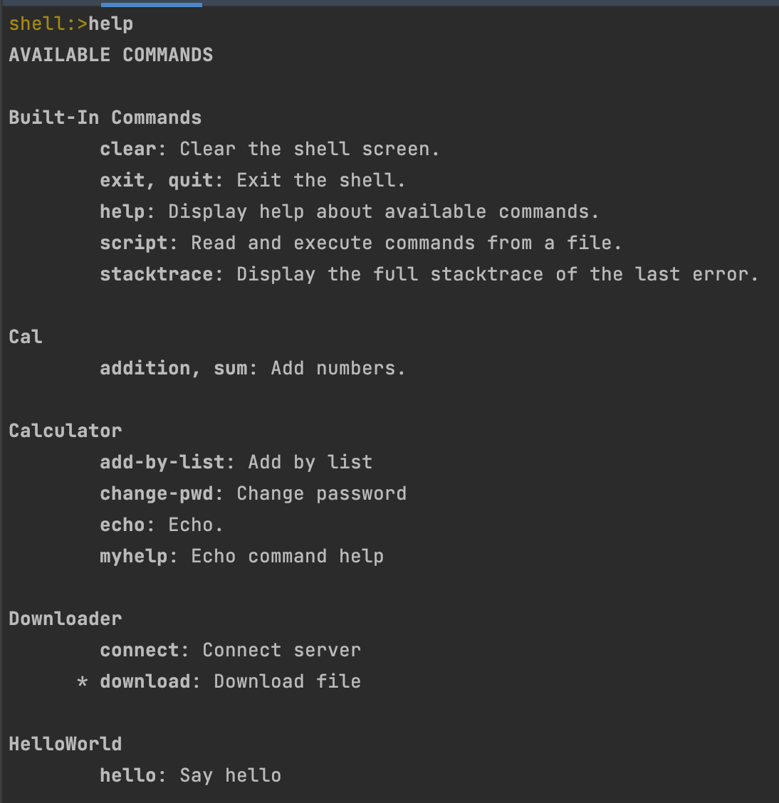 Spring Boot集成Spring Shell快速入门Demo 2024-05-22 spring, spring boot, java, 后端 13人 已看 Spring Shell构建在JLine之上,集成实现命令参数校验。从2.0版本开始,Spring Shell还可以非常方便地与Spring Boot进行集成,直接使用Spring Boot提供的一些非常实用的功能(如:打包可执行jar文件)。